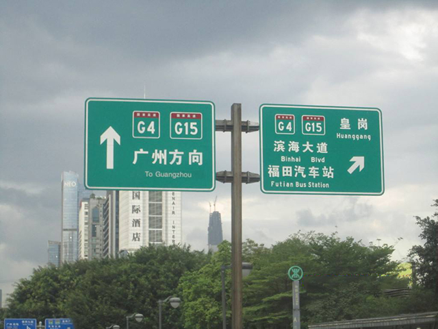 城市道路交通標志標牌有:線路指示牌、出入口指示牌、換乘指示牌、緊急逃生指示牌、客流引導指示牌等。 公路交通:公路里程指示牌、路口(立交橋)線路指示牌、提醒指示牌、警告指示牌等。