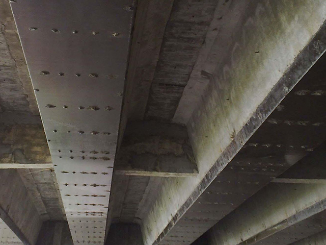 用粘結(jié)劑粘貼鋼板補(bǔ)強(qiáng)、加固的鋼筋混凝土結(jié)構(gòu)構(gòu)件,能大大提高其原設(shè)計(jì)承載力和抗破壞能力。這是因?yàn)檎迟N鋼板后,提高了原結(jié)構(gòu)構(gòu)件的配筋量,相應(yīng)就提高了結(jié)構(gòu)構(gòu)件的抗拉、抗彎、抗剪等方面的力學(xué)性能,而這些性能是靠結(jié)構(gòu)膠粘劑的良好粘結(jié)性能,把鋼板與混凝土牢固地粘結(jié)在一起,形成整體,有效地傳遞應(yīng)力,共同工作來保證的。